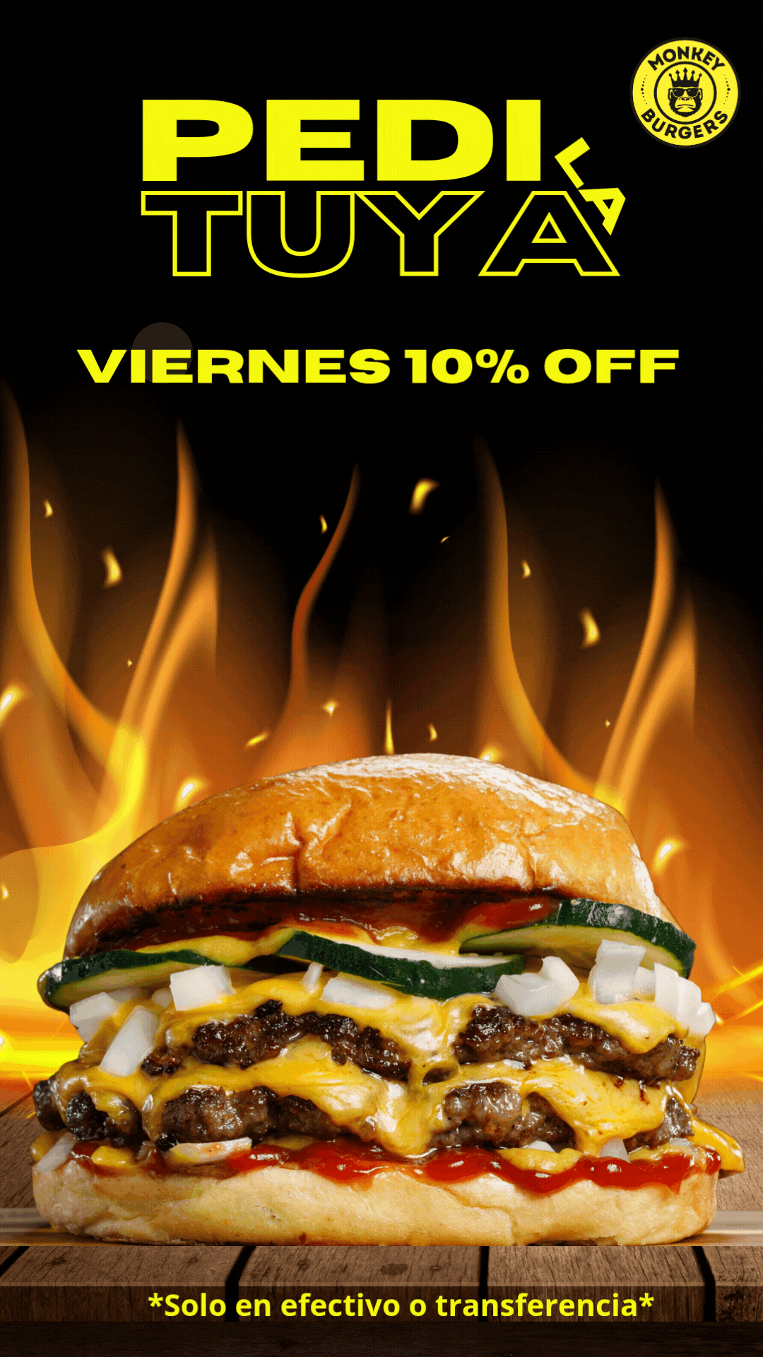 “En Monkey Burgers nacimos con una misión clara: llevarte la mejor experiencia de hamburguesas directo a tu casa, como si estuvieras en un local. Empezamos en 2016 en Palermo y hoy seguimos creciendo desde Villa del Parque, con un modelo de cocina especializada en delivery. Creemos en la calidad real: pan suave, carne fresca, ingredientes seleccionados y combinaciones que sorprenden. Nuestra identidad está inspirada en la adrenalina de los deportes extremos y la cultura urbana, un estilo de vida sin límites. Porque para nosotros, comer no es solo alimentarse, es vivir una experiencia intensa.”